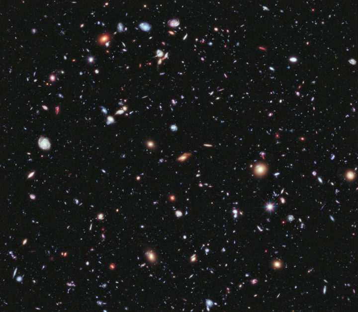 Hubble-avaruusteleskoopin eXtreme Deep Field –kuva on otettu eteläisen Sulatusuunin tähdistön suunnalta, sellaiselta alueelta taivasta, jossa ei juuri näy tähtiä. Se on siis ikkuna galaksiavaruuteen. (Kuvassa erottuu itse asiassa kolme tähteä, ne erottaa galakseista siinä että niiden ympärillä näkyy sädemäinen kuvio – kaikki muut ovat galakseja). Kuvan alue on halkaisijaltaan vain noin kymmenesosa täysikuun leveydestä. Kuvaa on valotettu yhteensä 23 vuorokautta, ja siinä erottuu noin 5 500 galaksia. Niistä kaukaisimmat nähdään sellaisina, kuin ne olivat noin 13,2 miljardia vuotta sitten. Universumi on 13,8 miljardia vuotta vanha.