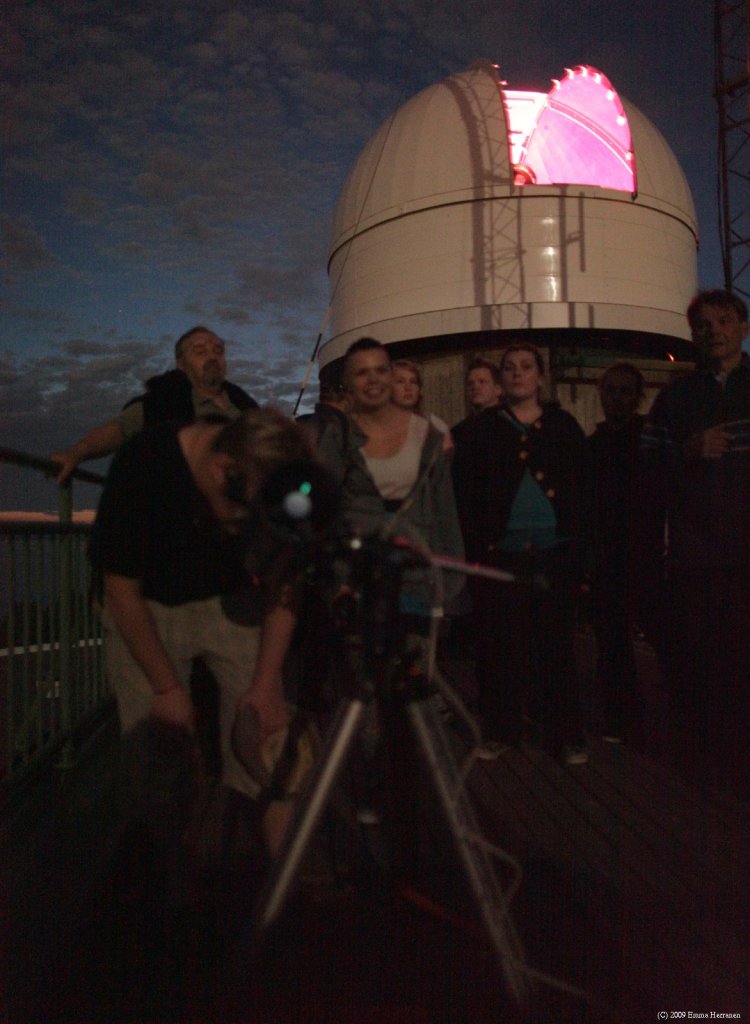 Tähtitorni on kiva iltakävelykohde ja evääksi voi ottaa vaikka termospullollisen glögiä. Kuva Tampereen Ursan tähtinäytöksestä (elokuu 2009).