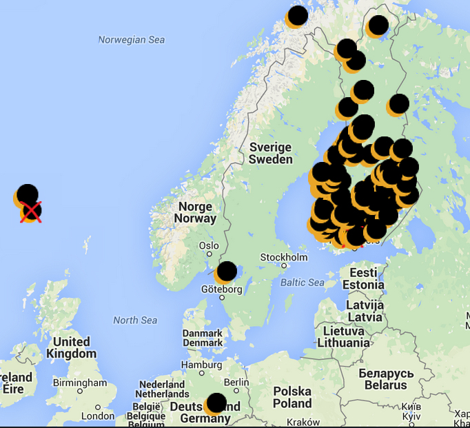 20.3.2015 osittaisen auringonpimennyksen näkyminen kartalla Lähde: www.taivaanvahti.fi