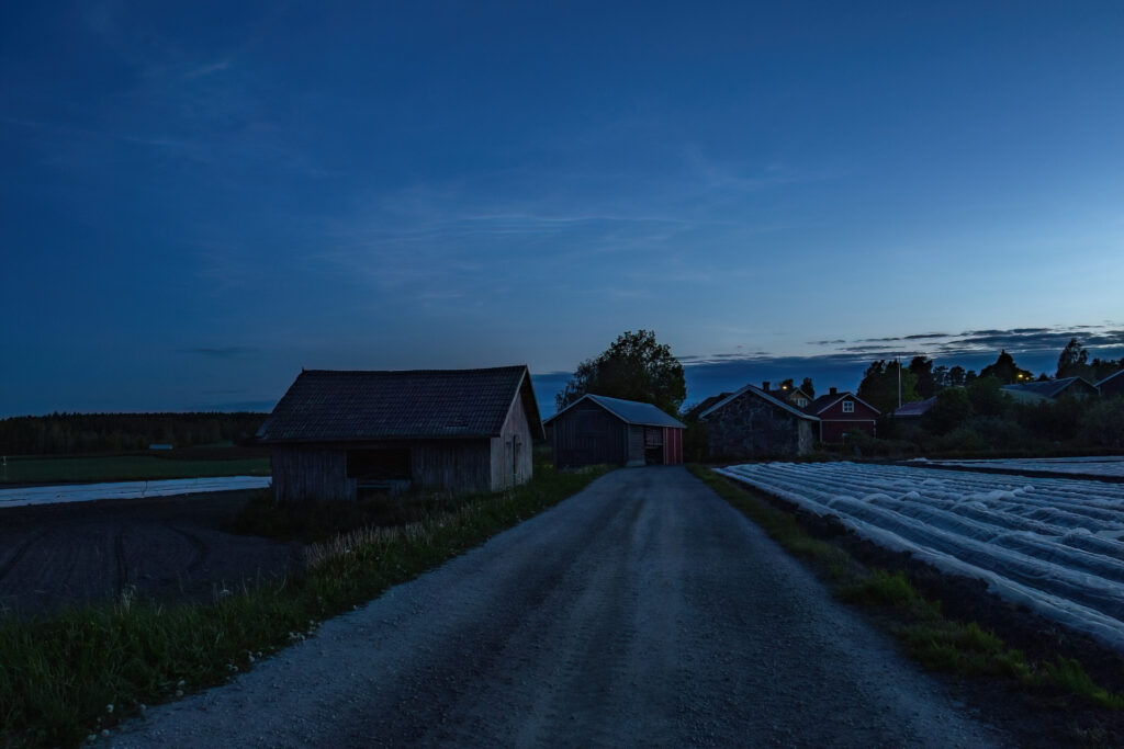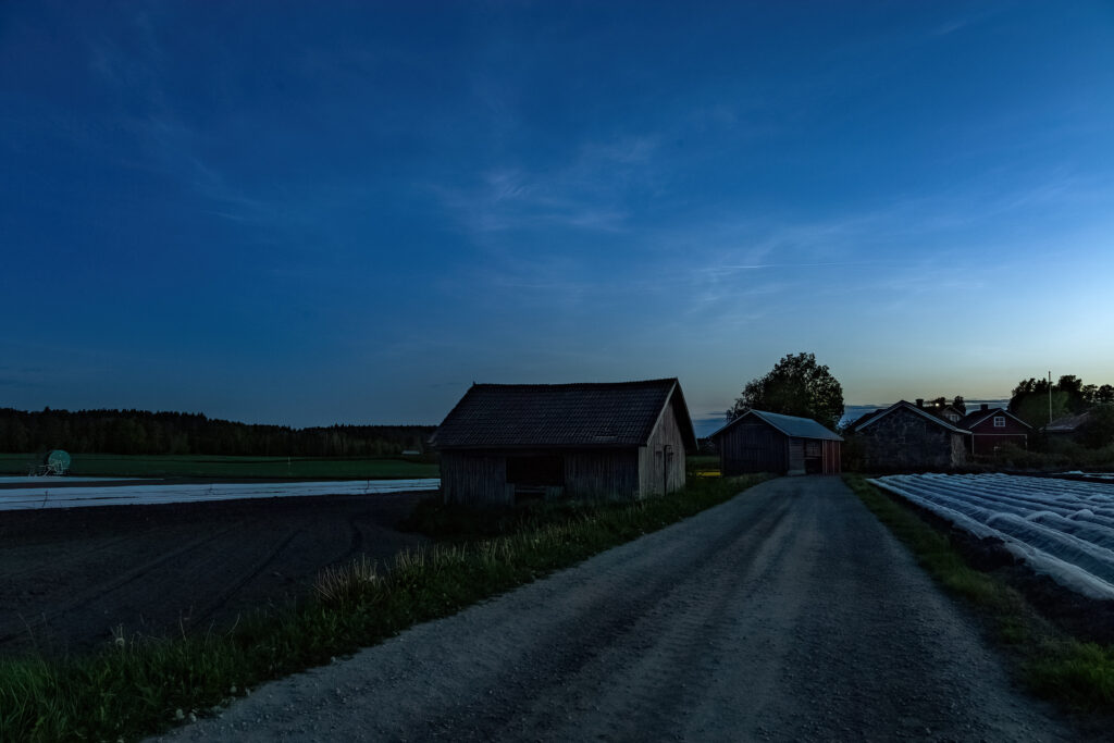 Ennen puoltayötä kävimme kävellen tiedustelureissulla Rikun kanssa. Paluumatkalla kotiin epäröimme, idän-kaakon puolella oli jotain kirkastumaa, joka näytti yököille, mutta taivas oli aivan liian vaalea. Päätin tarkkailla hetken tilannetta, mutta ensin piti käydä kotona pukemassa lisää vaatetta. Kesäkuinen yö oli taipumassa koleaksi.