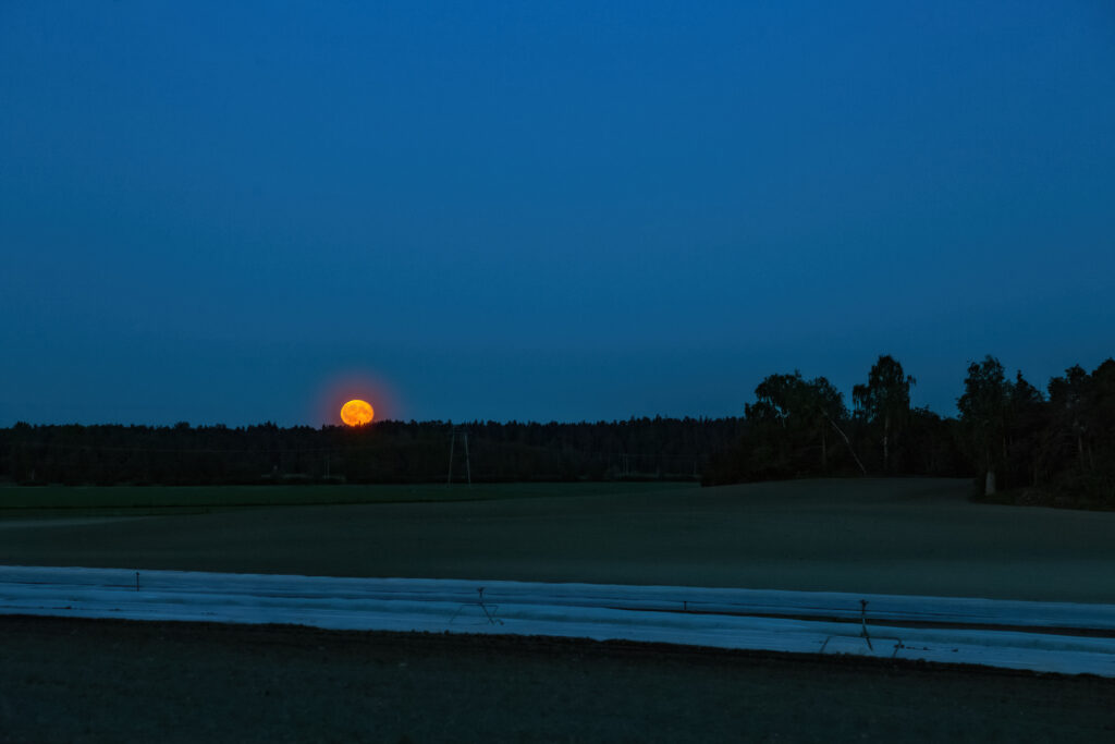 Kuun nousu metsän takaa keskeytti hetkeksi yökkösten tarkkailun. Kuu oli massiivisen oranssi ja se on aina yhtä pysäyttävä ja jotenkin lumoava näky hämärässä kesäyössä. Kuuta ympäröi bonuksena komea, punainen siitepölykehä, mutta Canonin nokalla oli vähän väärä optiikka Kuun siitepölykehän lähipotrettia ajatellen, joten näillä kuvilla mennään tällä kertaa. Pölymäärä, joka on ilmassa pelloilla ei innosta just nyt objektiivin vaihtoon. Jos muuten totta puhutaan niin luulin, että ekat kauden yököt otetaan zoomaten puolituurilla kuviin jostakin kaukaa taivaanrannasta kuten aina ennen. Ei puhettakaan, että kausi aukenisi puolen taivaan yökkösillä…Olipas varsin räväkkä alku, täytyy myöntää.