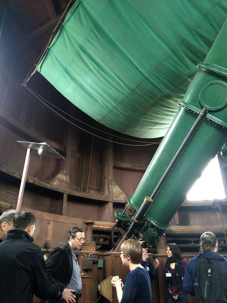 Työpajaan kuului myös opastettu kierros Observatorioon. Pääopas Paula Kyyrö esittelee kaksoisrefraktoria. Kuva: Harri Haukka.