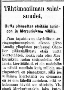 Pohjalainen-lehti kertoo vielä 1.8.1914, että Vulkanusta yhä etsitään. Juttu kyllä mainitsee, että olettamuksesta pitäisi jo luopua, mutta epäsäännöllisyydet Merkuriuksen radassa olivat vielä selittämättä. Vasta seuraavana vuonna Einstein osoitti, että suhteellisuusteoria kykenee ne selittämään.
