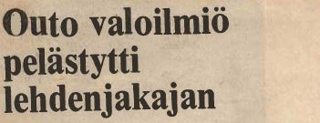 "Outo valoilmiö pelästytti lehdenjakajan", uutisoi Turun Sanomat syyskuun 16. päivänä. Lehti kertoo Loimaan kaupungin taivaalla kello 3.10 näkyneestä kuplanmuotoisesta valoilmiöstä, jonka oli nähnyt paikallinen lehdenjakaja. Valokupla oli alkanut nousta ja suuntasi kulkunsa kohti lehdenjakajaa. "Sydän oli pysähtyä, niin valtavasti minä pelästyin. En tiennyt mihin olisin rynnännyt, sillä kaikissa taloissa nukuttiin", lehti lainaa havaitsijan kertomusta. Valoilmiö muutti suuntaansa ja katosi itätaivaalle.