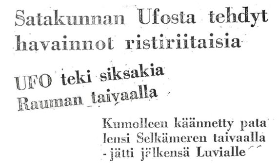 Helsingin Sanomat uutisoi ilmiöstä 5.2.1971 otsikolla "Armeija tutkii Euran valoilmiötä". Lehti kertoo, että lokakuun 3. päivän iltana Rauman koillispuolella Eurajoen TV-maston lähellä nähtiin outo leijuva valoilmiö. Ilmiö on ollut näkyvissä silminnäkijöiden mukaan puoli tuntia. Ilmiö muistutti kumollaan olevaa pesuvatia ja sen kerrotaan vaihtaneen väriä hyvin nopeasti. Ensimmäinen havainto tehtiin kello 21.30 ja iltakymmenen jälkeen se ei ollut enää näkyvissä.