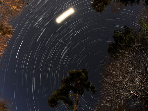 Esimerkki viirutähtikuvasta 18.2.2024, joka tehtiin GoPro Hero 9 -kameralla, jossa on valmiina yökuvaustila ja ns. Time Lapse -toiminto (Night Time-Lapse). Kamera kuvasi taivasta noin tunnin verran ja tuotti lopputuloksena noin 280 kuvaa. Kirkas kohde kuvassa on Kuu. Kuvat pinottiin eli yhdistettiin toisiinsa Sequator-ohjelmalla. Satelliitit näkyvät kuvissa poikittaisviiruina ja tarkemmin tutkittuna tässäkin kuvassa oli toistakymmentä satelliittia. (Kuva: Leo Wikholm)