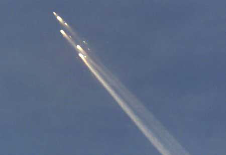 Seuraavat havainnot tehtiin kello 18.23 Ranskassa, jolloin taivaalla nähtiin voimakkaasti kipinöivä kohde. Hollannin horisontissa kohde näkyi useampana palasena. Satoihin palasiin hajonnut kohde loisti taivaalla pilvien välistä Saksan Heidelbergissä kello 18.26.