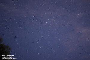 | Kosmos 405 rkt | 5118 | 1971-028B | 2014-08-03 | 23:58:02 | HK | mag 1 sattumalta, vaihteli mag+1-+3 n 5 sek jaksolla |