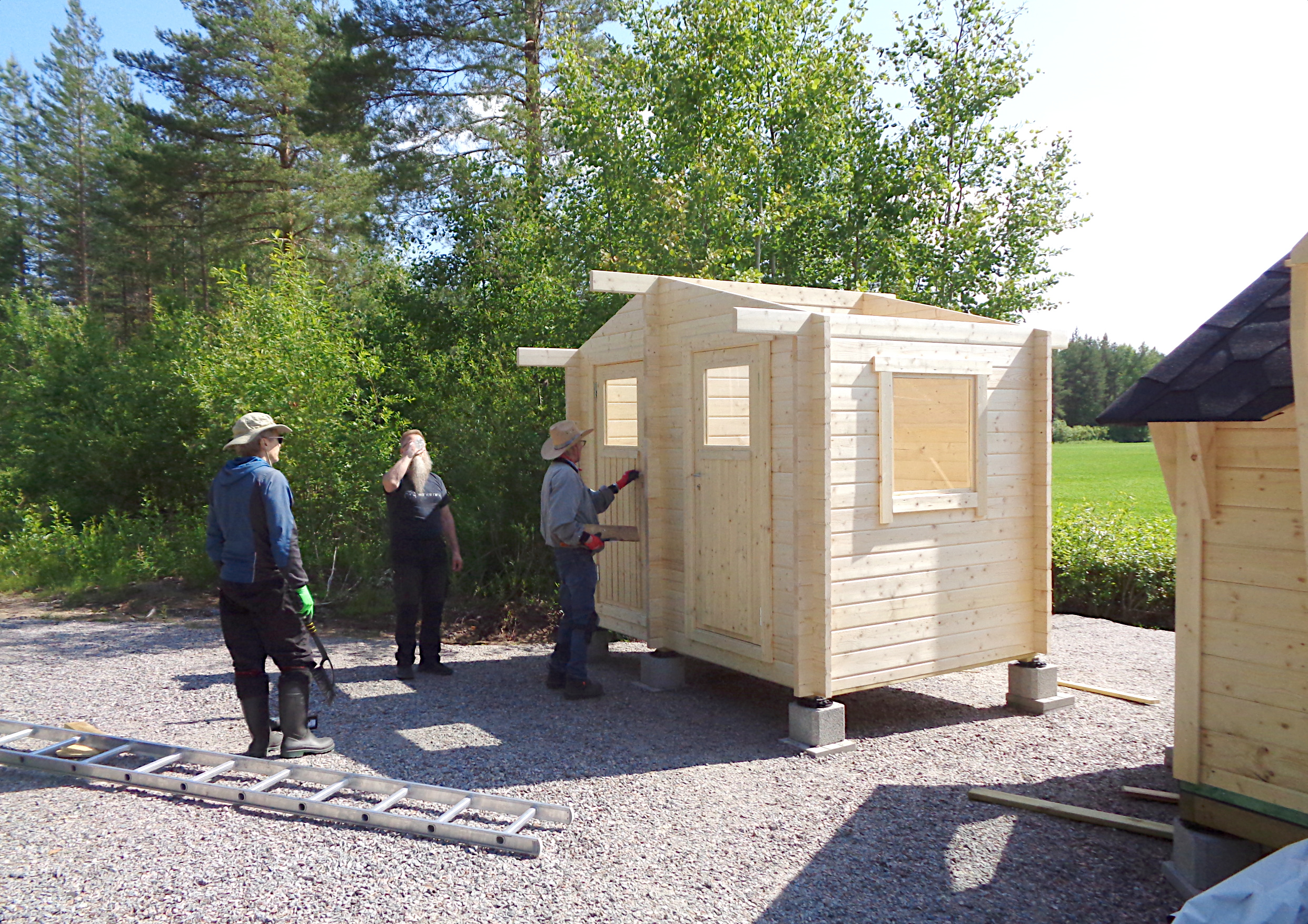 Hellettä enteilevänä torstaina talkoilemassa on ollut tuttu poppoo. Mukana oli Arthur, Peter, Ozzy ja Gary. Ryhmän ensisijaisena tehtävänä on ollut huussirakennelman yksityisyydensuojan parantaminen ja lattian asentaminen. Vieläkään sille suurelle hädälle ei ole suoritusmahdollisuuksia vaan vielä pitää hetki odottaa. Grillikodan sisuksiin on kajottu näpertelemällä yhtä sun toista pientä, mitä tuntuu riittävän.