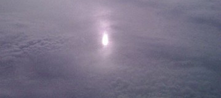 The photo on the right, and another one ( 1 ) were taken on an airplane from Beijing to Singapore on 3 January. The Bottlinger Rings appeared two times in total, when the plane flew above patches of dissipating AC clouds. I only managed to capture the first appearance. When the rings appeared, the subsun was glaring, and I got a feeling of the ring swelling and shrinking as the cloud moved, but I guessed it was only an illusion.