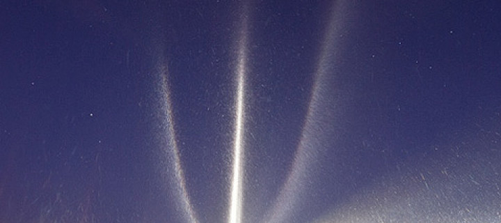 I remember the discussion not long ago about divergent light halos and the lack of superparhelia in spotlight images due to the almost parallel beams.