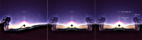 Now the sun elevation at Lascar is 2-3 degrees. The image is four frame stack. 20° upper plate arc is well visible. New feature, “Moilanen arc”, has appeared. We observed it visually, it was V-shaped, not like the light mass seen in this photo. Photographing this arc was difficult, because it appeared and disappeared in seconds intervals. Measurements from two slides placed the arc at 10.5° from the sun, which is less than for Moilanen arc. But of course there is uncertainty in that value.