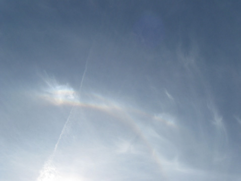 Nick Beck has sent this high cloud halo display that he observed on Christmas eve in Florida. The sun elevation was 31 degrees when it started and the display ended when the sun was 7 degrees above the horizon, lasting a little over 3 hours. The observed halos include Lowitz, upper sunvex and suncave Parry arcs ( 1 ), possible Wegener ( 2 ) and helic ( 3 ) arcs, and infralateral arc ( 4 ),among others ( 5 – 6 – 7 – 8 – 9 – 10 – 11 )