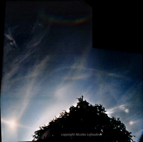 Last weekend, I visited my parents in Normandy. I took advantage of my visit to dig through my old astronomy journals of observations and pictures. I was looking for my records of what has been my best halo display. In my memories, it consisted in extremely bright left parhelion, bright circumzenithal, and a combination of suncave Parry and upper tangent arc.