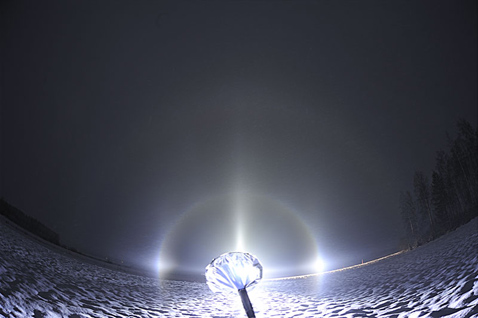 Michael is presenting a central question. The rarity of superparhelia is buggin me. Last winter I did not see at all, even though observed displays also under different divergent lamps. This winter I saw it once at Ylläs: from a lamp that was on the ground and pointing pretty much straight up (lighting up flag poles). That was one huge superparhelia.