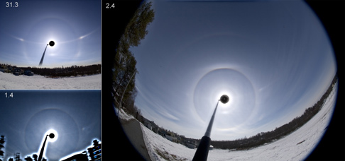 Sometimes odd radius halos come day after another. In April 1987 I observed three consecutive days of odd radius halos and in April 1996 Jarmo Moilanen had four days in a row. On both periods there was also one night with moon odd radius halos.