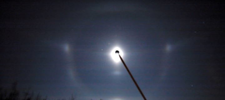 A one night cold snap in Fairbanks on 24 January produced the above display with halos from pyramid crystals. Let Walt Tape, who took the photo, tell more: