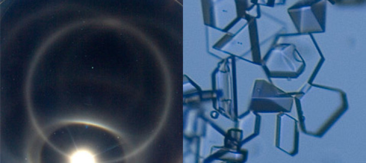 Jari Luomanen ( 1 ) and Mika Aho ( 2 ) photographed the display and took videos in the spotlight beam. I sampled crystals ( 3 – 4 – 5 ). Wegener arcs were full and both lower Parrys were visible.