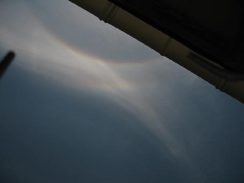 That is a nice high-sun halo display with upper parry. After seeing this on the blog it brought back a memory of a display I photographed while on lunch break in school. The display had 22d halo, sharp circumscribed halo, small and complete parhelic circle, infralateral arc, very fine circumhorizontal arc,and faint parry above the circumscribed halo. I need to look at photos closely to see it.