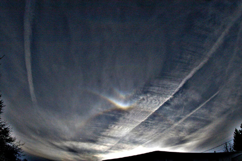 While at work prior to leaving I was outside and happened to look up and saw nice wide tangent arc spreading out. Inside it was a convex Parry, the first decent one since 2000. As I watched and shot photos I could see the more common concave arc and there was also faint supralateral arc and circumzenith arc.
