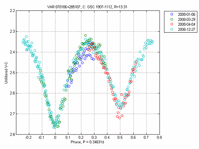 Tommi Itkosen tammikuussa 2008 löytämä muuttuja varmistui joulukuun 27. tehdyssä Tommin ja Pertti Pääkkösen havainnossa kontaktikaksoistähdeksi. Aiemmin tänä vuonna tehdyt olivat liian lyhyitä muuttujan luonteen selvittämiseksi. Tähti VAR070106+285107 on kirkkaudeltaan noin 16 mag.