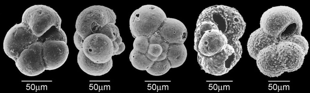 Erityisen tärkeä mikrofossiili on huokoseläin Parvularugoglobigerina eugubina (joka ymmärrettävästi kulkee yleensä nimellä P. eugubina), sillä sen ilmestymisestä katsotaan alkavan paleogeenikauden varhaisin ajanjakso eli Dania-aika. Mutta kuinka kauan Chicxulubin törmäyksestä kesti siihen, että P. eugubina ja muut paleoogeenikauden uudet lajit kehittyivät liitukautisista esivanhemmistaan?
