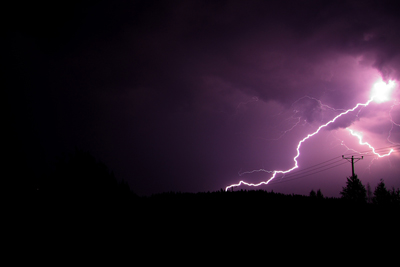 Voimakkaat öiset syöksyvirtaukset kaatoivat metsää Itä-Suomessa 29.7-30.7. Tuomas Mäkynen kuvasi salamoivaa rintaman etureunaa Mikkelin Otavassa.