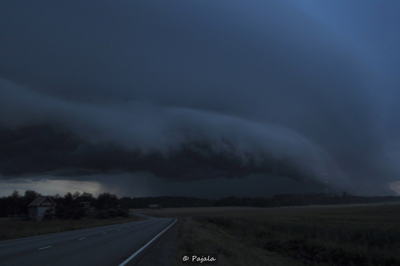 Myös Tero Pajala havaitsi Lounais-Suomessa illalla 23.7 edenneen ukkossolun näyttävän vyörypilven Jokioisissa.