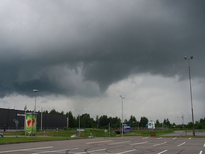 Jarno Lehtonen kuvasi suppilopilven Porin K-raudan pihassa 25.6.2011. Pilvi liikkui Porin lentokentän suunnassa.