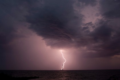 Kuuma ilmamassa muuttui epästabiiliksi 12.7.2010 ja osin rajujakin ukkoskuuroja esiintyi erityisesti Pohjois-Pohjanmaalla. Jari Ylioja kuvasi salaman iskun Lumijoella tuulivoimalan kohdalla 14.7.2010.