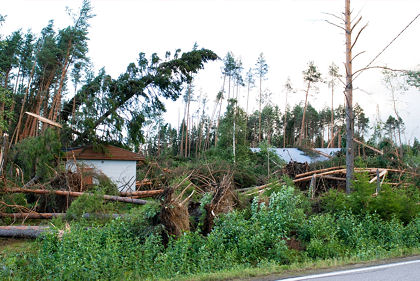 Jarno Friman kävi tutustumassa Veera-rajuilman jälkiin Uuraisilla. Kunnassa kaatui puita muuallakin kuin uutisoidulla leirintäalueella.