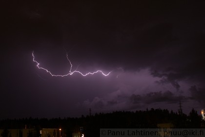 Päivällä 9.8.2011 vesipatsaita muodostaneiden kuurosolujen kehitys jatkui Suomenlahdella läpi yön. Illalla ilta-auringon valaisemat alasimet herättivät runsaasti huomiota. Pääkaupunkiseudulla saattoi yöllä nähdä salamointia, josta esimerkkinä Panu Lahtisen ottama kuva pilvisalamasta.