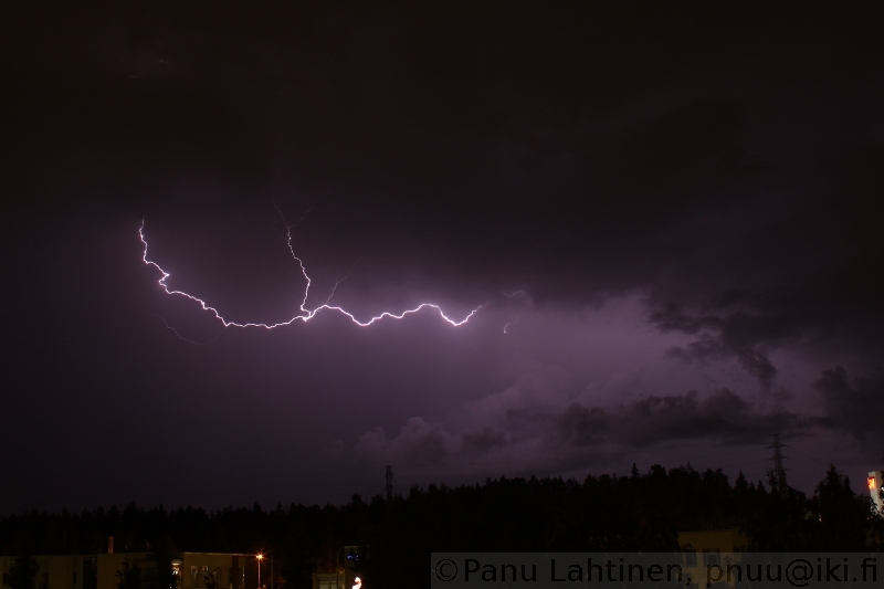 Päivällä 9.8.2011 vesipatsaita muodostaneiden kuurosolujen kehitys jatkui Suomenlahdella läpi yön. Illalla ilta-auringon valaisemat alasimet herättivät runsaasti huomiota. Pääkaupunkiseudulla saattoi yöllä nähdä salamointia, josta esimerkkinä Panu Lahtisen ottama kuva pilvisalamasta.