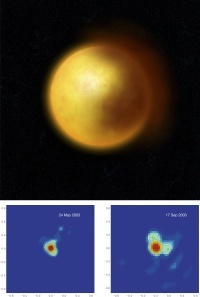 6000 valovuoden etäisyydeltä kuvatun tähden, RY Sagittariin, kokoa voi verrata euron kolikkoon 75 kilometrin etäisyydellä. Erotustarkkuuden saavuttaminen onnistui yhdistämällä Andeilla sijaitsevan VLT:n neljä 8,2-metristä teleskooppia pareittain interferometrisesti.