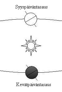 Tänään kello 12.51 on syyspäiväntasaus. Syyspäiväntasauksen aikaan Aurinko siirtyy taivaanpallon pohjoiselta puoliskolta eteläiselle ja päivä ja yö ovat suunnilleen yhtä pitkiä kaikkialla maapallolla.