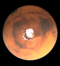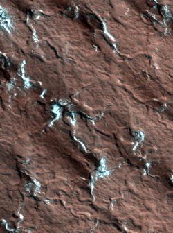 Viereisen kuvan näkymät ovat Marsin eteläiseltä napa-alueelta. Tutkijoiden hämähäkkimäisiksi luonnehtimat erikoiset muodot ovat luultavasti syntyneet hiilidioksidijään muuttuessa suoraan höyryksi. Höyry kulkee ensin Marsin pinnan alla. Paikat, joissa kaasu pääsee lopulta pinnalle, näkyvät tummina juovina, koska niiden luokse kerääntyy maan alta tullutta pölyä ja likaa.