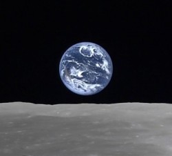 Videoissa Kuun maisema lipuu hitaasti luotaimen alla. Maan nousu Kuun horisontin takaa on eräs videoiden kohokohdista.
