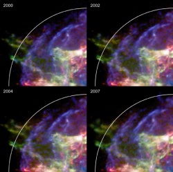 Nasan Chandra-röntgenteleskooppi on onnistunut havaitsemaan muutoksia Cassiopeia A:n supernovajäänteessä. Kyseessä on ensimmäinen kerta, kun supernovajäänteessä on pystytty havaitsemaan muutoksia, aiemmin havainnot ovat olleet vain staattisia. Tutkimus julkistettiin Yhdysvaltain tähtitieteellisen seuran (AAS) kokouksessa Long Beachissä Kaliforniassa