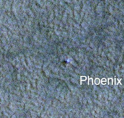Nasa on kuvannut MRO-luotaimen HiRISE-kameralla Phoenix-laskeutujaa Marsin pinnalla. Joulukuun loppupuolella otettu kuva on ensimmäinen laskeutujasta sen lopetettua toimintansa marraskuun alussa.
