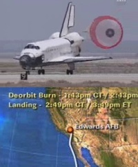 Atlantis-sukkula laskeutui onnistuneesti Edwardsin lentotukikohtaan Kaliforniassa perjantai-iltana kello 22.49. Ensimmäinen laskeutumismahdollisuus Cape Kennedyyn kello 21.18 jouduttiin ohittamaan sateisen sään vuoksi. Koska sää ei Floridassa näyttänyt paranevan, tehtiin päätös laskeutumisesta Kaliforniaan.