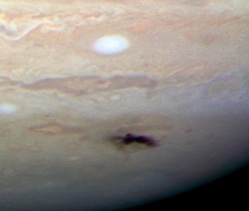 Tuntematon avaruuden kappale on iskeytynyt Jupiteriin. Itse törmäystä ei onnistuttu havaitsemaan, mutta iskun synnyttämä jälki on selvästi näkyvissä lähellä planeetan eteläistä napa-aluetta.