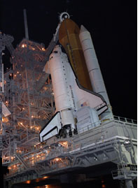 Avaruussukkula Atlantis ja sen sisällä oleva eurooppalainen Columbus-moduuli odottavat lähtöä avaruuteen. Floridaan ennustettu huono sää todennäköisesti kuitenkin estää tälle päivälle suunnitellun laukaisun.