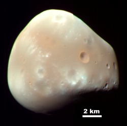 Marsin kuista kauempana kiertävä Deimos on kooltaan noin 15 x 12 x 10 kilometriä. Sen uskotaan olevan alkujaan Marsin gravitaatiollaan kaappaama asteroidi.