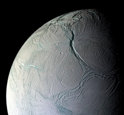 500-kilometrisen kuun etelänavan alueella sijaitsevat ”tiikeriraidat” syytävät kuun sisuksista jäähiukkasia. Samalla halkeamista pursuava jää laajentaa Enceladuksen kuorta samaan tapaan kuin Maan valtamerten keskiselänteet.