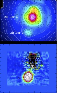 ”Sovelsimme uutta tekniikkaa tähän asti melko tutkimattomaan kirkkaamman tähden kumppaniin, joka on noin kaksi kertaa Jupiterin kokoinen ja tunnetaan nimellä AB Doradus C. Tuloksemme olivat yllättäviä”, selostaa Niranjan Thatte Oxfordin yliopistosta. Kuvasarja osoittaa, miten himmeä C-tähti saatiin näkyviin suodattamalla ylimääräiset häiriötekijät ja A-tähden valo pois.