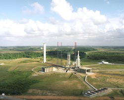 Tämän vuoden viimeisen rakettilaukaisun valmistelut ovat Ranskan Guyanassa loppusuoralla. Ariane 5:n raskas versio ECA vie suunnitelman mukaan marraskuun 28. päivänä Maata kiertävälle radalle kaksi Eutelsatin tietoliikennesatelliittia. Suomalaisia on lähdössä seuraamaan tätä laukaisua Kouroun avaruuskeskukseen. (Kyseessä on Tähdet ja avaruus -lehden lukijamatka, johon otetaan vastaan ilmoittautumisia.)