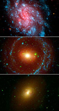 ”Tuloksemme todentavat, että kaikki galaksit synnyttävät tähtiä alussa”, kertoo Galexin päätutkija Chris Martin Caltechista. ”Tämän jälkeen törmäysten, polttoaineen loppumisen ja mustien aukkojen toiminnan kautta ne vähitellen lopettavat tähtien tuotannon.”