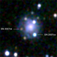 Tutkijat ovat Swift-luotaimen avustuksella ensi kertaa havainneet kaksi supernovaa samassa galaksissa samaan aikaan. 380 miljoonan valovuoden päässä sijaitsevassa elliptisessä galaksissa havaittiin ensimmäinen supernova 19. toukokuuta ja 16 päivää sen jälkeen toinen.