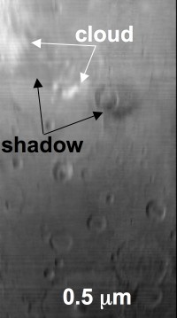 Mars Express -luotain on onnistunut kuvaamaan punaisen planeetan yläilmakehästä pilviä, jotka ovat tarpeeksi paksuja aiheuttamaan varjoja planeetan pinnalle.