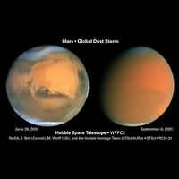 Jo vähän ennen Juhannusta Marsissa alkanut valtava pölymyrsky on laajetessaan peittänyt koko planeetan eteläisen pallonpuoliskon pölyyn, eikä myrskyn laantumisesta näy vielä merkkejä. Marsin ohuessa ilmakehässä leijaileva hyvin hienojakoinen pöly on siinä määrin pimentänyt Auringon, että Mars-mönkijät Spirit ja Opportunity alkavat olla vaikeuksissa.